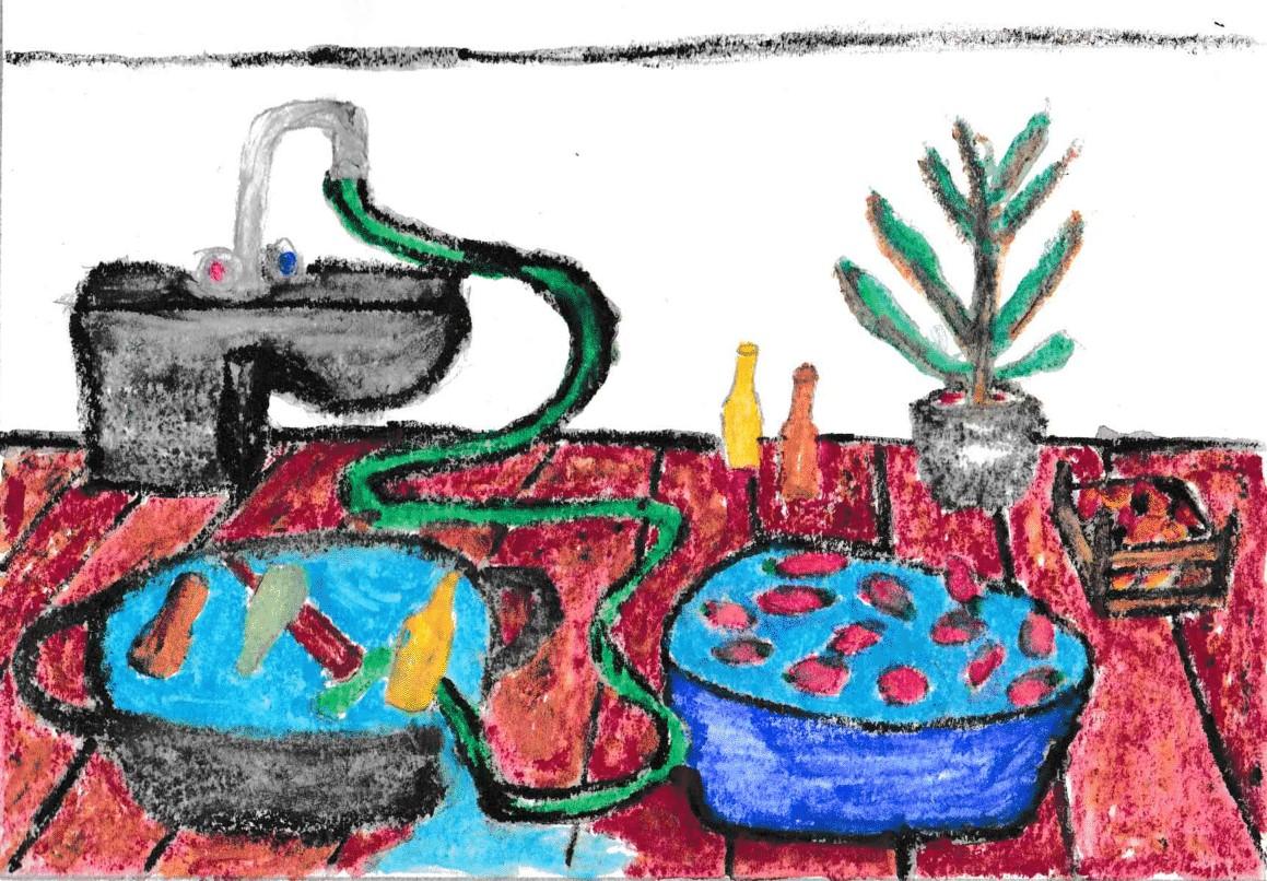 Nel cortile la nonna preparava tutte le bottiglie di vetro, bottiglie recuperate da innumerevoli bevute di birra. Una per una, le insaponava e metteva in ammollo nella bagnarola. Noi ragazze, le davamo una mano, le immergevamo nelle bagnarole in modo da rimuovere bene tutto il detersivo e così da lavarle bene bene. Ogni tanto di nascosto arrivavano i cugini che ci bagnavano con la pompa, noi per giocare poi bagnavamo loro. Era divertentissimo ridevamo e correvamo come i pazzi. La nonna se ci vedeva si biliava e ci urlava contro Viditi chiddu ca aviti a fari, si vi sciuppiati poi vi dugnu i supra. Oggi amu a travagghiari amo a fari i buttigghi, e si cuntinuati accusi finisci chi vi sciuppiati e namu a ricurdari a iunnata. 3 infine tutti bagnati finivamo di sciacquare le bottiglie rimaste. Lasciavamo tutte le bottiglie, tantissime bottiglie al sole tutte luccicanti a riposare e asciugare. Ma i giochi con l’acqua non finivano qui! Subito dopo si cominciava con il lavaggio delle cassette dei pomodori. buttavamo i pomodori dentro le bagnarole, li lasciavamo in ammollo per un pò e poi uno per uno li prendevamo e riponevamo dentro le cassette.