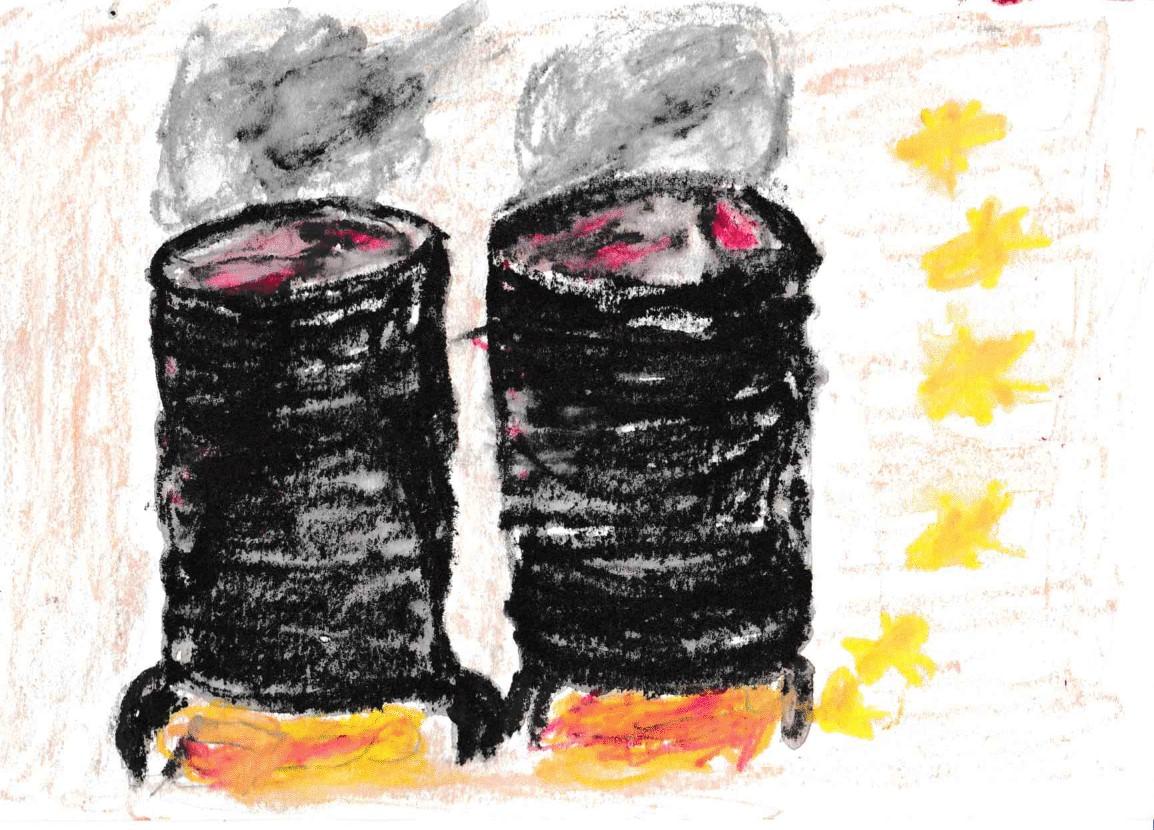 Si prendevano dei grandi barili ex barili di petrolio davvero enormi sempre molto più alti di me. Lo zio o la nonna con l’aiuto di una scala, si calavano dentro a testa in giù e pian piano ci mettevano dentro le bottiglie di pomodoro, disposte una accanto all’altro non proprio attaccate ma vicine, poi sopra uno strato di panni e pezze vecchi e così via. Quando si giungeva alla fine, sopra l’ultimo strato di pezze, si mettevano delle pietre per tenere il tutto fermo. Infine si versava dentro l’acqua con una pompa che dal basso saliva fino in cima, era importante che fosse riempito tutto fino all’orlo. A questo punto, proprio sotto i grandi barili, venivano accesi altri grandi fuochi. Dopo un pò di ore, il tempo di mettere apposto tutta l’attrezzatura, si spegnevano i fuochi e si lasciavano dentro le bottiglie tutta la notte a raffreddare e a riposare.